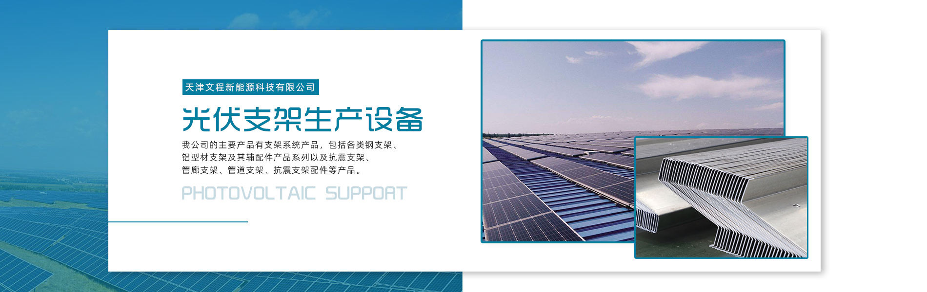天津文程新能源科技有限公司成立于2021年,是專注于集中式、分布式、漁光互補和農(nóng)光互補等清潔能源發(fā)電的綜合性企業(yè) 公司是集設(shè)計、研發(fā)、生產(chǎn)、制造為一體的綜合型企業(yè)。公司占地面積20000平方米,注冊資金5000萬元整。公司坐落于華北鋼鐵重鎮(zhèn)--大邱莊,距天津市區(qū)50公里、鄰104和205國道及京滬高速,交通十分便捷。 本公司擁有三個生產(chǎn)車間,其中兩個冷彎型鋼車間,一個鋅鋁鎂型鋼車間,擁有自動冷彎成型機10條,自動數(shù)控沖孔機10條以及焊接加工等設(shè)備。主要生產(chǎn)產(chǎn)品有:太陽能光伏支架、各種規(guī)格的C/Z/U型鋼、抗震支架、管廊支架及整套配件等。
